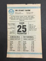 25 KASIM 1991 -TAKVİM YAPRAĞI-DOĞUM GÜNÜ HEDİYESİ-DİYANET TAKVİMİ,ORHUN KİTABELERİ OKUNDU 1893,EDİNENİN KURTULUŞU 1922,ALPARSLANIN VEFATI 1072,YERLİ MALI KULLANALIM