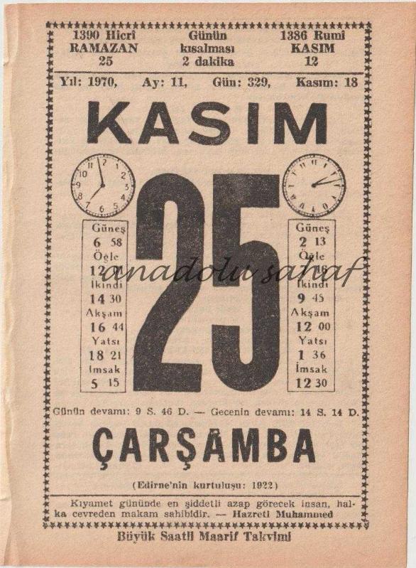 25 Kasım 1970 / Büyük Saatli Maarif Takvimi