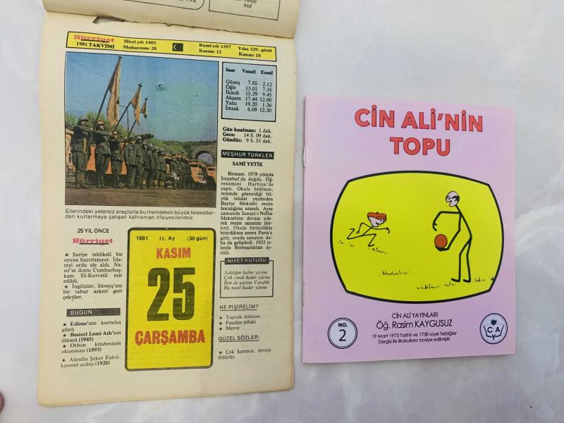 25 Kasım 1981 hediyelik orijinal Hürriyet takvim yaprağı (Cin Ali kitabı hediyeli:), en son 7 ay önce güncellenmiştir.