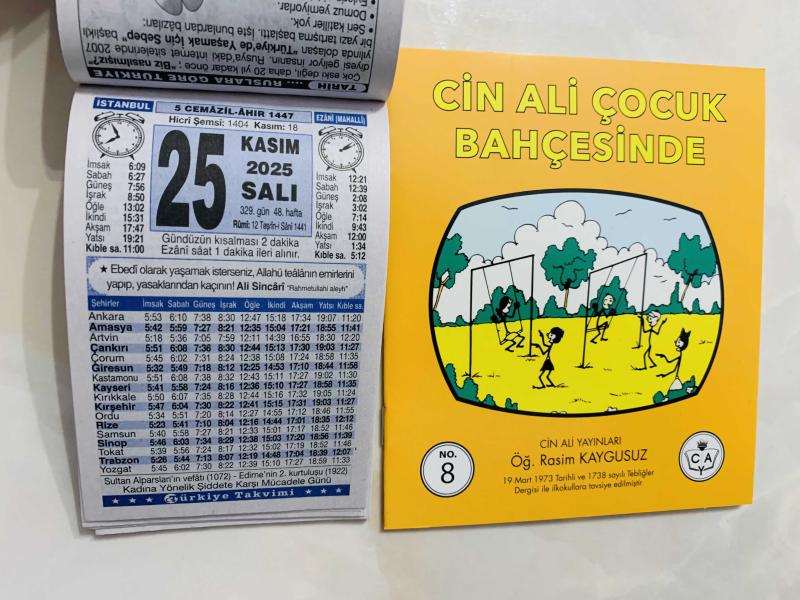 25 Kasım 2025 hediyelik orijinal Türkiye takvim yaprağı (Cin Ali kitabı hediyeli:), en son 7 ay önce güncellenmiştir.