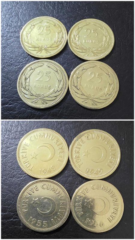 25 Kuruş 1948-1949-1955-1956 SET