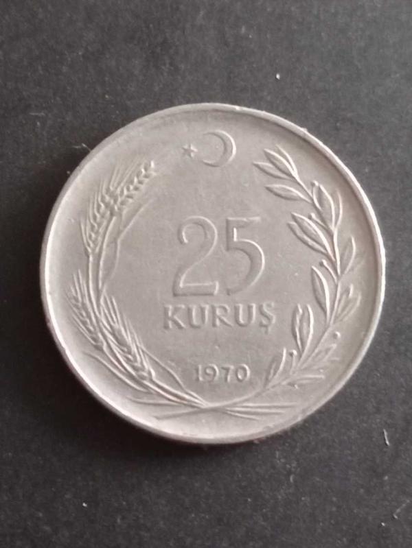 25 Kuruş 1970 Madeni Para. Eski Koleksiyon Madenî Para. Eski Para. Hatıra Para.