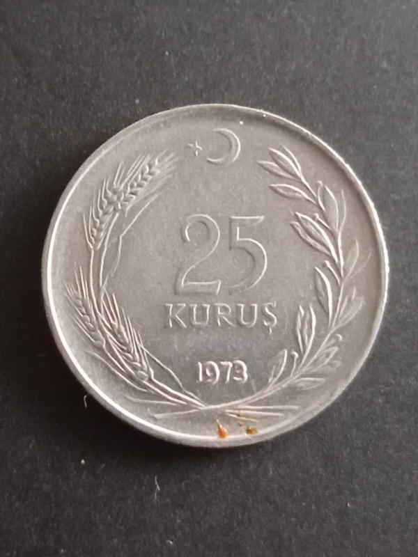 25 Kuruş 1973 Madeni Para. Eski Koleksiyon Madenî Para. Eski Para. Hatıra Para.
