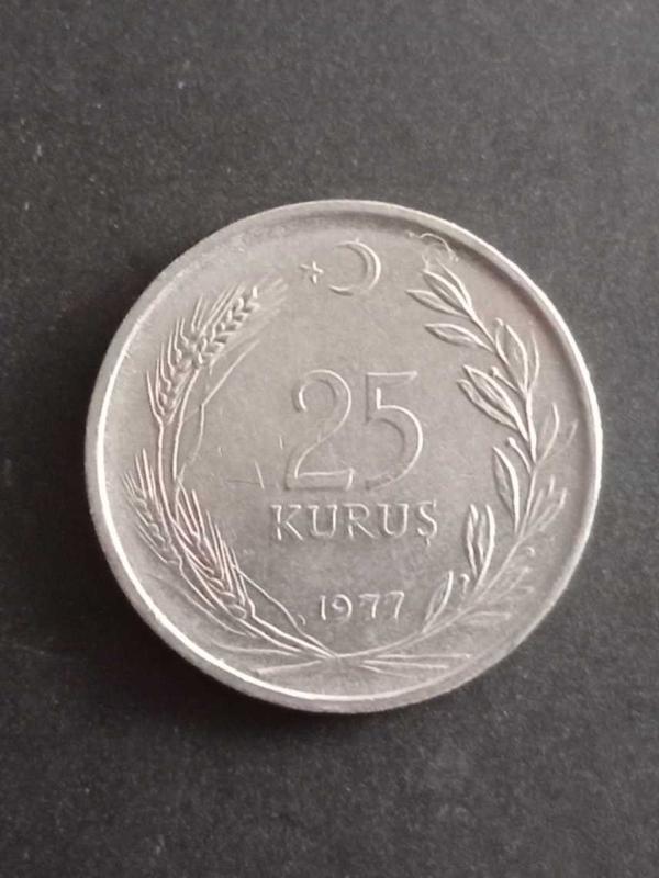 25 Kuruş 1977 Madeni Para. Eski Koleksiyon Madenî Para. Eski Para. Hatıra Para.