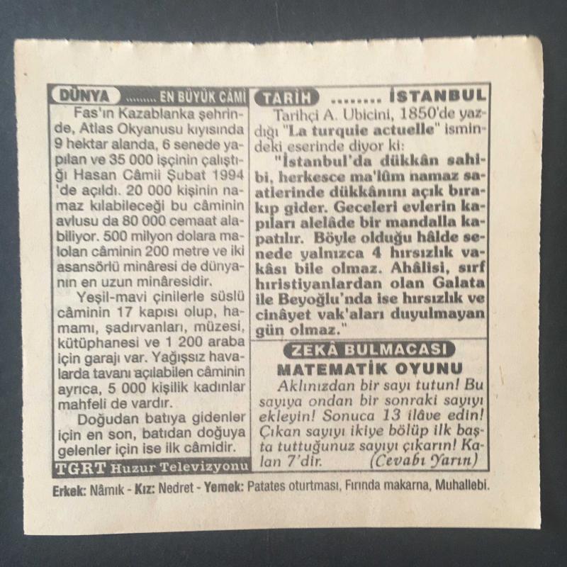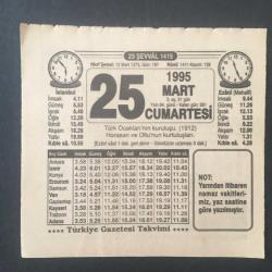 25 MART 1995 -TAKVİM YAPRAĞI-DOĞUM GÜNÜ HEDİYESİ-TÜRKİYE GAZETESİ TAKVİMİ,TÜRK OCAKLARININ KURULUŞU 1912,HORASAN VE OLTUNUN KURTULUŞLARI ,EN BÜYÜK CAMİİ,İSTANBUL, en son 8 ay önce güncellenmiştir.