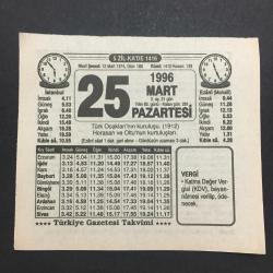 25 MART 1996 -TAKVİM YAPRAĞI-DOĞUM GÜNÜ HEDİYESİ-TÜRKİYE GAZETESİ TAKVİMİ,TÜRK OCAKLARININ KURULUŞU 1912,HORASAN VE OLTUNUN KURTULUŞLARI ,GENCİM GÜZELİM AMA, en son 8 ay önce güncellenmiştir.