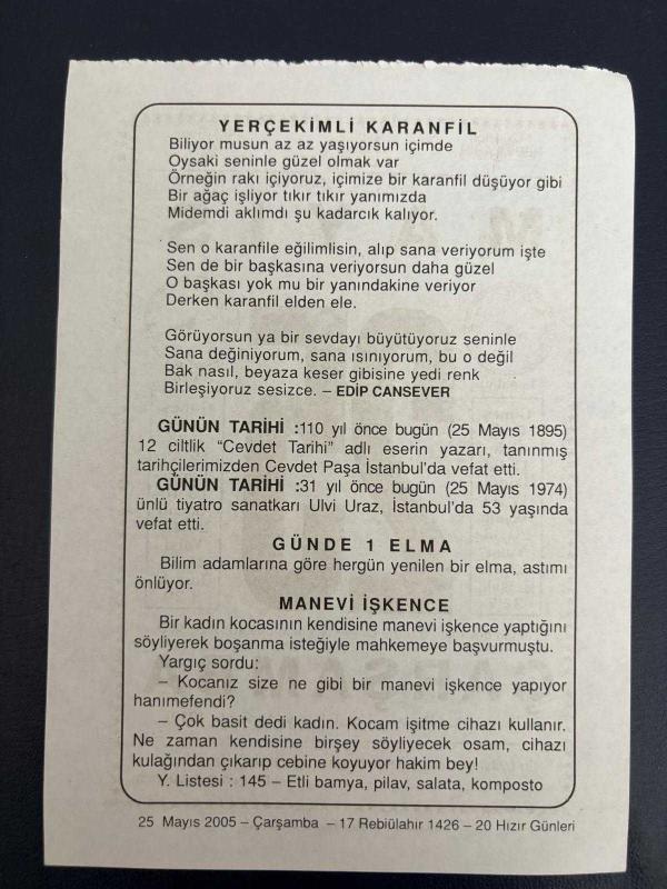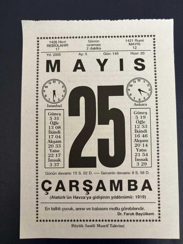 25 MAYIS 2005 - TAKVİM YAPRAĞI - DOĞUM GÜNÜ HEDİYESİ - BÜYÜK SAATLİ MAARİF TAKVİMİ - DR.FARUK BAYÜLKEM - EDİP CANSEVER - CEVDET PAŞA VEFAT ETTİ - GÜNDE 1 ELMA - MANEVİ İŞKENCE, 6 ay önce satışa sunulmuştur.