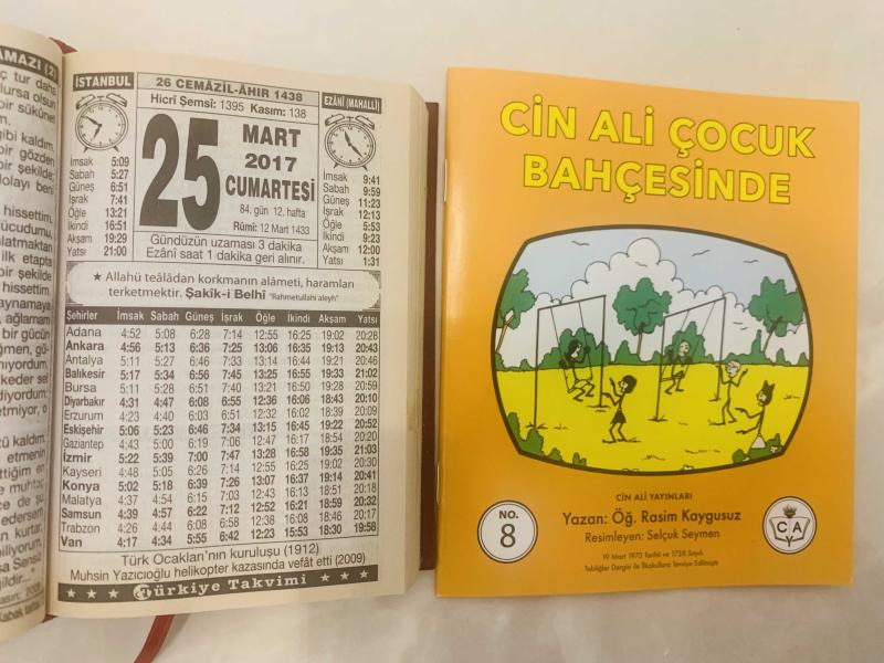 25 Mart 2017 hediyelik orijinal Türkiye takvim yaprağı (Cin Ali kitabı hediyeli:) başlıklı ürün, Efemera, Müzik, Sinema > Belge ve Evraklar > Takvimler kategorisi altında İkinci El olarak satılmaktadır.