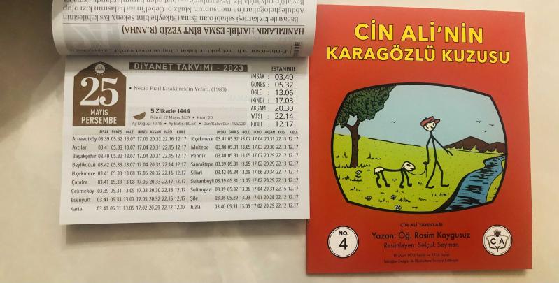 25 Mayıs 2023 hediyelik orijinal Diyanet takvim yaprağı (Cin Ali kitabı hediyeli:), 2 yıl önce satışa sunulmuştur.