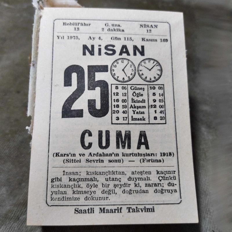 25 NİSAN 1975 SAATLİ MAARİF TAKVİM YAPRAĞI, en son 1 yıl önce güncellenmiştir.