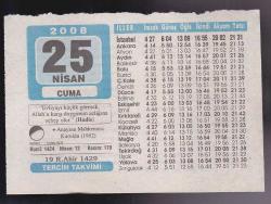 25 NİSAN 2008 TAKVİMİ YAPRAĞI, en son 1 yıl önce güncellenmiştir.