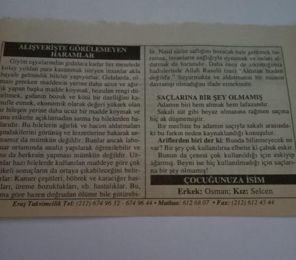 25 Nisan 2006-Orijinal Takvim Yaprağı-Doğum Günü-Söz,Nişan,Nikâh,Düğün ve Önemli Günler Hediyesi-ERAŞ Hizmet Takvimi-Ayet-Hadis(Kara Şehitlerini Anma Günü)-Alışverişte Görülmeyen Haramlar-Saçlarına Bir Şey Olmamış-Çocuğunuza İsim:Osman,Selcen başlıklı ürün, Efemera, Müzik, Sinema > Belge ve Evraklar > Takvimler kategorisi altında İkinci El olarak satılmaktadır.