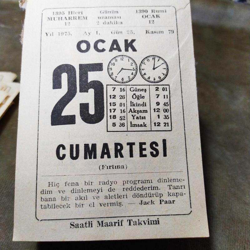 25 OCAK 1975 SAATLİ MAARİF TAKVİM YAPRAĞI, en son 1 yıl önce güncellenmiştir.