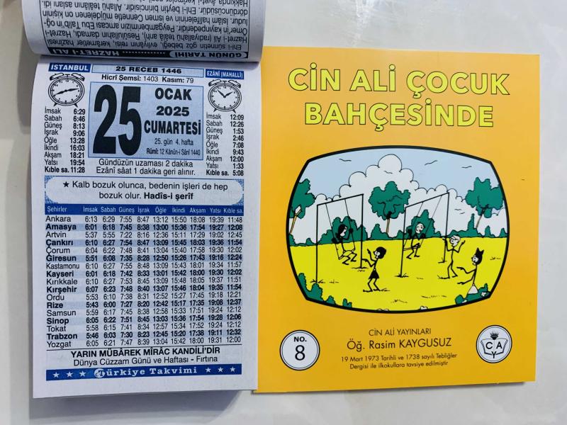 25 Ocak 2025 hediyelik orijinal Türkiye takvim yaprağı (Cin Ali kitabı hediyeli:), en son 7 ay önce güncellenmiştir.