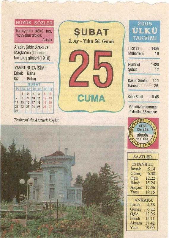 25 ŞUBAT 2005 ÜLKÜ TAKVİM YAPRAĞI, en son 1 yıl önce güncellenmiştir.