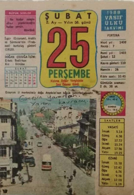 25 Şubat 1988 Takvim Yaprağı - Doğum Günü Hediyesi EFM(N)7720, en son 17 gün önce güncellenmiştir.