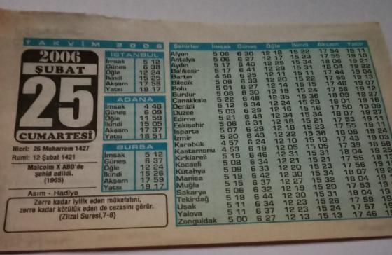 25 Şubat 2006-Orijinal Takvim Yaprağı-Doğum Günü-Söz,Nişan,Nikâh,Düğün ve Önemli Günler Hediyesi-Bizim Anadolu Takvimleri-Ayet-Hadis(Zilzal Suresi,7-8)(Malcom X ABD'de şehid edildi(1965))-Asım,Hediye-Sultan İkinci Ahmed-Allah'ı Tenzih, 19 gün önce satışa sunulmuştur.