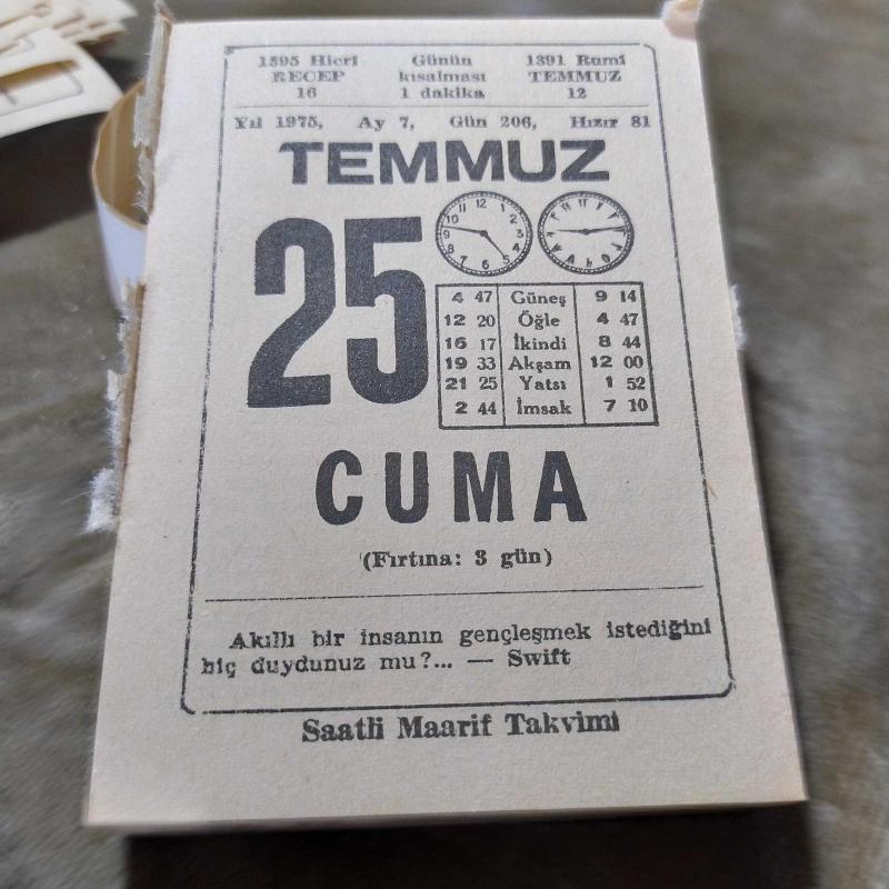 25 TEMMUZ 1975 SAATLİ MAARİF TAKVİM YAPRAĞI, en son 1 yıl önce güncellenmiştir.