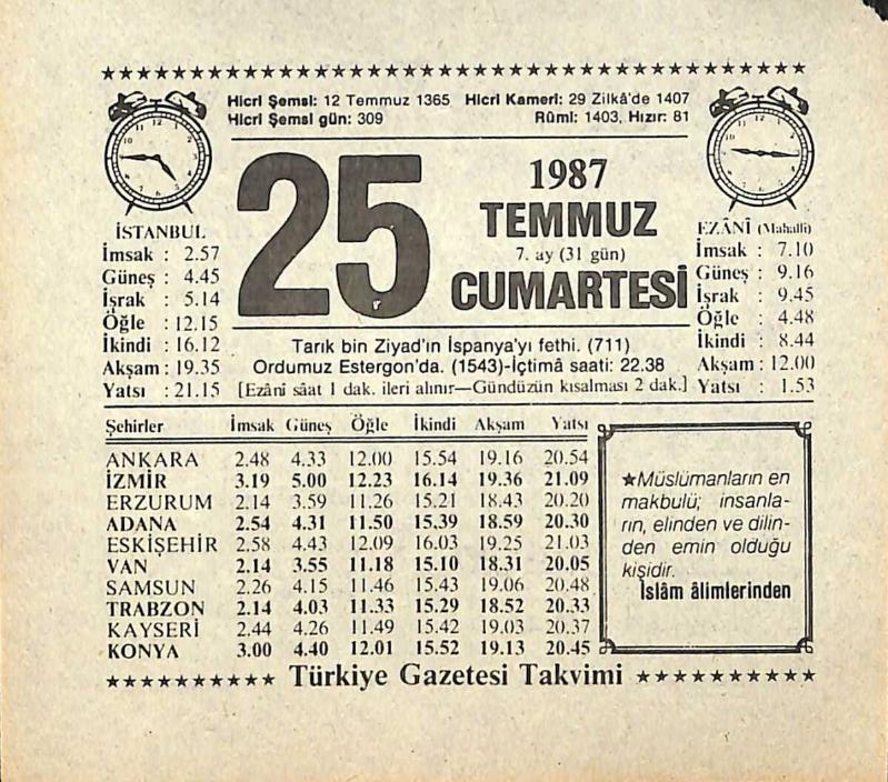 25 Temmuz 1987 Takvim Yaprağı - Doğum Günü Hediyesi EFMN13837, en son 21 gün önce güncellenmiştir.