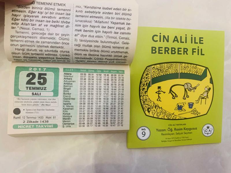 25 Temmuz 2017 hediyelik orijinal Hicret takvim yaprağı (Cin Ali kitabı hediyeli:) başlıklı ürün, Efemera, Müzik, Sinema > Belge ve Evraklar > Takvimler kategorisi altında İkinci El olarak satılmaktadır.