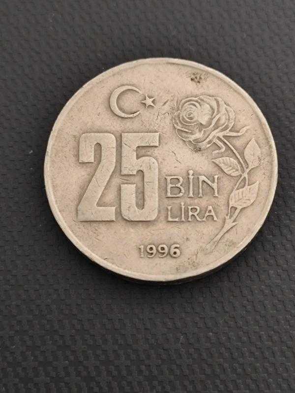 25 bin lira 25000 yirmibeşbin yirmi beş bin türk lirası 1996 yılı madeni para, 8 ay önce satışa sunulmuştur.