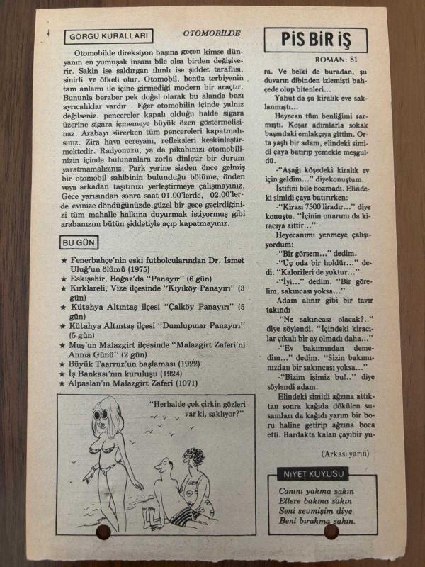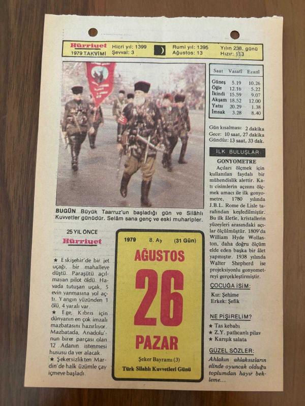 26 AĞUSTOS 1979 - TAKVİM YAPRAĞI - DOĞUM GÜNÜ HEDİYESİ - HÜRRİYET TAKVİMİ - PİS BİR İŞ ROMANI - Fenerbahçe'nin eski futbolcularından Dr. İsmet Uluğ'un ölümü (1975) - Büyük Taarruz'un başlaması (1922) - İş Bankası'nın kuruluşu (1924) - Alpaslan'ın Malazgirt Zaferi (1071) başlıklı ürün, Efemera, Müzik, Sinema > Belge ve Evraklar > Takvimler kategorisi altında İkinci El olarak satılmaktadır.