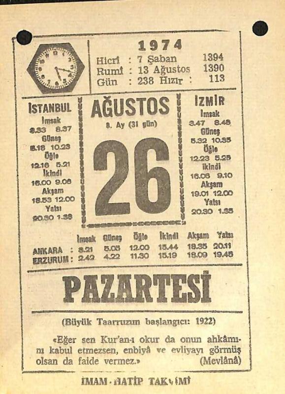 26 Ağustos 1974 Takvim Yaprağı - Doğum Günü Hediyesi EFM(N)12183, en son 21 gün önce güncellenmiştir.
