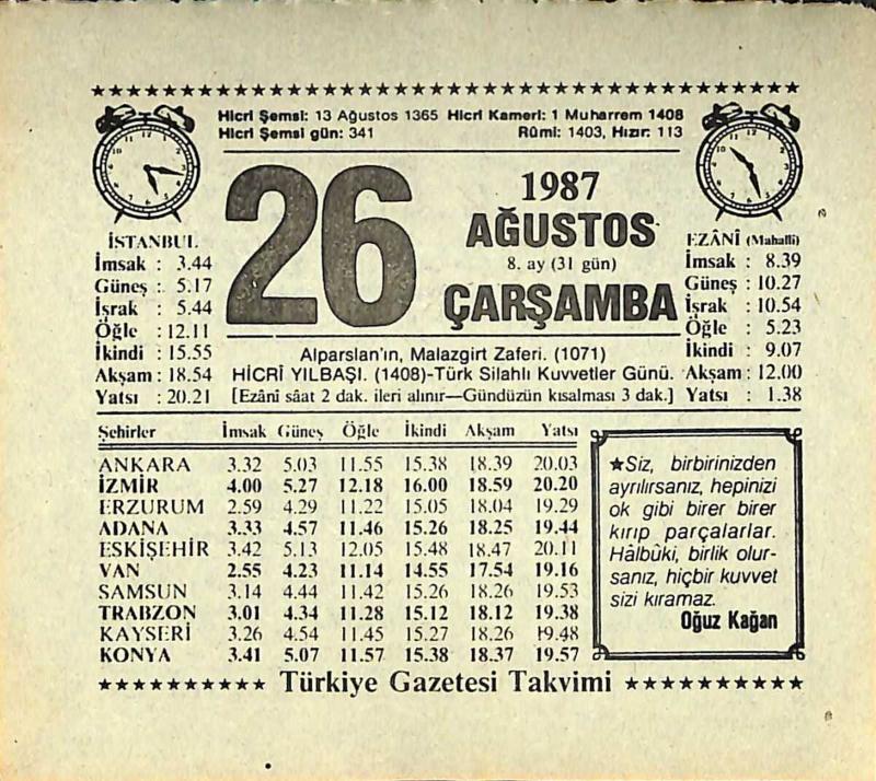 26 Ağustos 1987 Takvim Yaprağı - Doğum Günü Hediyesi EFMN13869, en son 21 gün önce güncellenmiştir.
