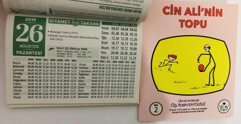 26 Ağustos 2019 hediyelik orijinal Diyanet takvim yaprağı (Cin Ali kitabı hediyeli:), 3 yıl önce satışa sunulmuştur.