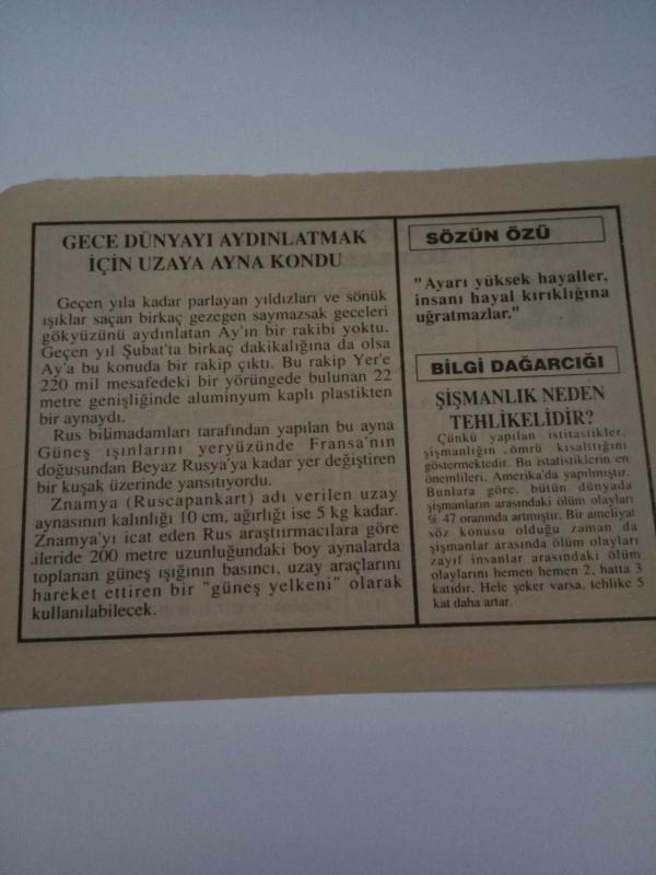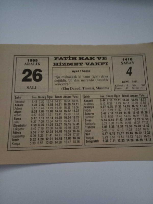 26 Aralık 1995-Orijinal Takvim Yaprağı-Doğum Günü-Söz,Nişan,Nikâh,Düğün ve Önemli Günler Hediyesi-Fatih Hak ve Hizmet Vakfı-Ayet/Hadis(Ebu Davud,Tirmizi,Müslim)-Gece Dünyayı Aydınlatmak İçin Uzaya Ayna Kondu-Sözün Özü-Şişmanlık Neden Tehlikelidir, 23 gün önce satışa sunulmuştur.