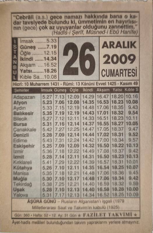 26 Aralık 2009-Orijinal Takvim Yaprağı-Doğum Günü-Söz,Nişan,Nikâh,Düğün ve Önemli Günler Hediyesi-Fazilet Takvimi-Ayet(Hadis)(Hadis-i Şerif,Müsned-i Ebu Hanife)-AŞURA GÜNÜ, Rusların Afganistan'ı İşgali (1979)-Gecenin Fazileti, en son 3 gün önce güncellenmiştir.