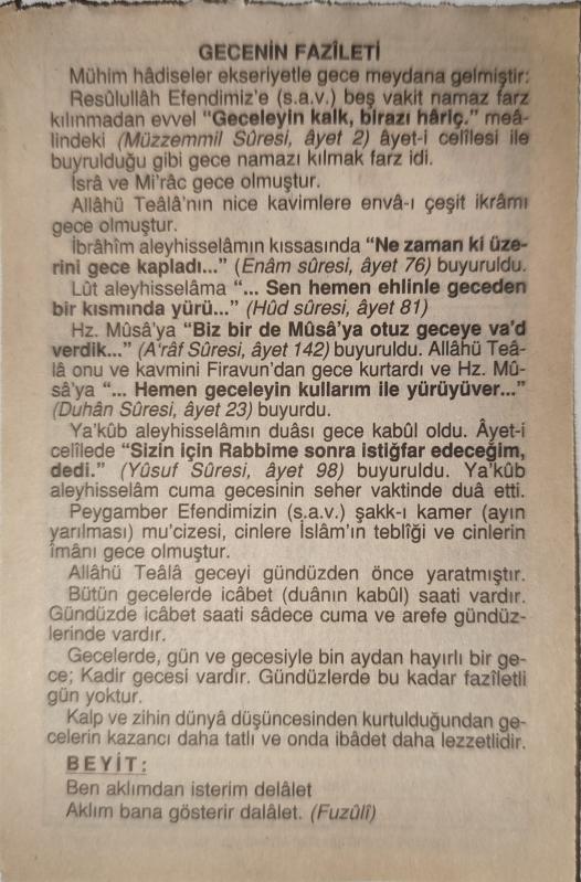 Kitapsız hayat kör,sağır,dilsiz yaşatmaktır.Kitap,zekayı kibarlaştırır.Kitaplar beni ortaya çıkardı.Milletlerin aklı,kitapla gelişir ve büyür.Kimler fazla okuyorsa,az okuyanlara hükmeder.Okumadan geçen bir gün,kaybedilmiş bir gündür.Söz uçar,yazı kalır.Yazı ile saptanmayan her şey,kaybolmuş demektir.Alem unutmuş,kalem (kitap) unutmamış.Bir kitabın içinde birçok ülkeler gezebilirsiniz.En iyi kitapları önceden okuyunuz,çünkü hepsini okuma fırsatını bulamayabilirsiniz.Bizde kitap baş üstünde taşınacak kadar makbuldur.Yazılı kağıdın üzerine basılmaz bile.”Hacı hacıyı Mekke’de,derviş dervişi tekkede bulur,demişler.Alim de alimi bizim çarşıda bulur.”Pirimiz Arslan Kaynardağ’dır,Nizamettin Aktuç’tur,Raif Yelkenci’dir.Gutemberg (1400-1468) matbaayı buldu.