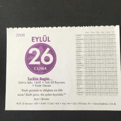 26 EYLÜL 2008-TAKVİM YAPRAĞI-DOĞUM GÜNÜ HEDİYESİ-KUVEYT TÜRK TAKVİMİ,GİRİTİN FETHİ,1669,TÜRK DİL BAYRAMI,KADİR GECESİ,BİN HAYDAN DAHA HAYIRLI BİR GECE KADİR GECESİ