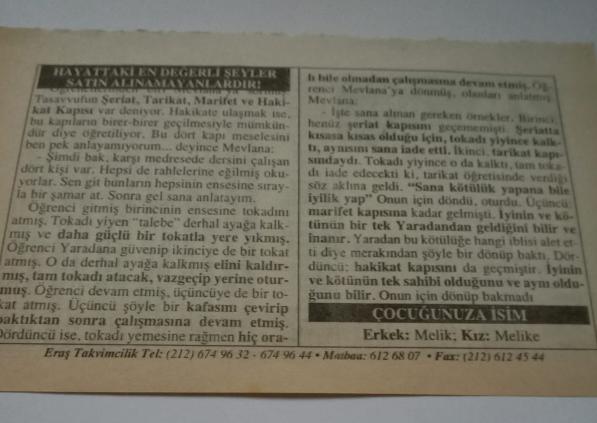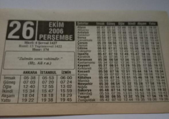 26 Ekim 2006-Orijinal Takvim Yaprağı-Doğum Günü-Söz,Nişan,Nikâh,Düğün ve Önemli Günler Hediyesi-ERAŞ Hizmet Takvimi-Ayet-Hadis(Hz.Ali (r.a))-Hayattaki En Değerli Şeyler Alınamayanlardır!-Çocuğunuza İsim:Melik,Melike, en son 3 ay önce güncellenmiştir.