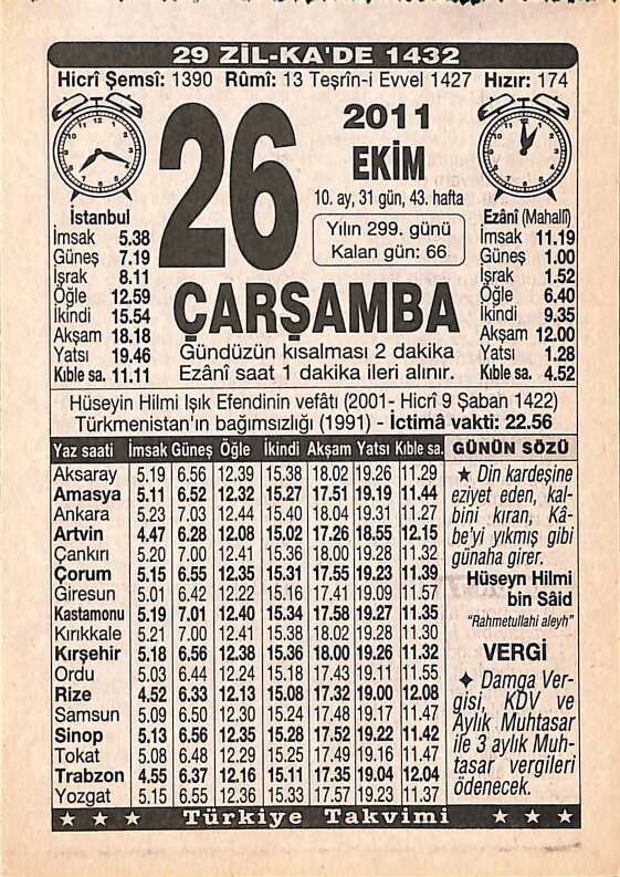 26 Ekim 2011 Takvim Yaprağı - Doğum Günü Hediyesi EFMN15294, en son 20 gün önce güncellenmiştir.