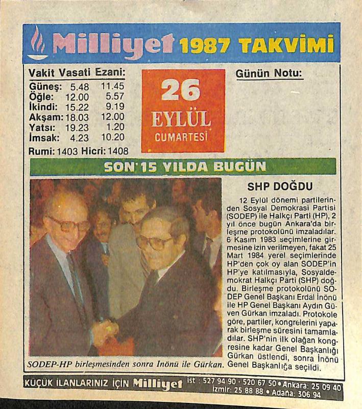26 Eylül 1987 Takvim Yaprağı - Doğum Günü Hediyesi EFMN14143, en son 20 gün önce güncellenmiştir.