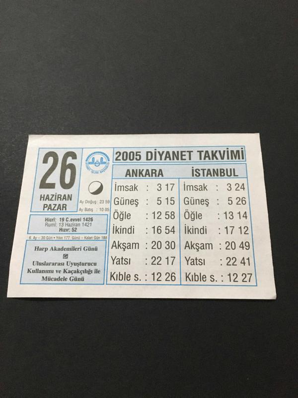 26 HAZİRAN 2005-TAKVİM YAPRAĞI-DOĞUM GÜNÜ HEDİYESİ-DİYANET TAKVİMİ,HARP AKADEMİLERİ GÜNÜ,ULUSLARARASI UYUŞTURUCU KULLANIMI VE KAÇAKÇILIĞIYLA MÜCADELE GÜNÜ,KREDİ KARTLARI İLE ALIŞVERİŞİN DİNİMİZDEKİ YERİ, en son 8 ay önce güncellenmiştir.