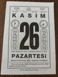 26 KASIM 2007 - TAKVİM YAPRAĞI - DOĞUM GÜNÜ HEDİYESİ - BÜYÜK SAATLİ MAARİF TAKVİMİ - KANİYE BASIM - TÜRKİYE ÇÖL OLMASIN - BÜYÜK İSTANBUL KAPALIÇARŞI YANGINI - REŞAT NURİ - MÜMTAZ ARIKAN başlıklı ürün, Efemera, Müzik, Sinema > Belge ve Evraklar > Takvimler kategorisi altında İkinci El olarak satılmaktadır.