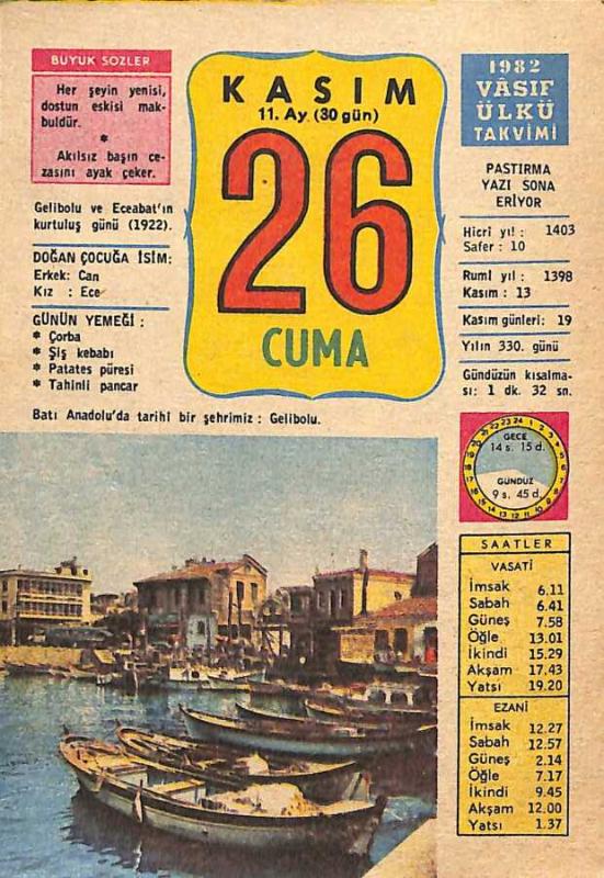 26 Kasım 1982 Takvim Yaprağı - Doğum Günü Hediyesi EFM(N)11889, en son 20 gün önce güncellenmiştir.