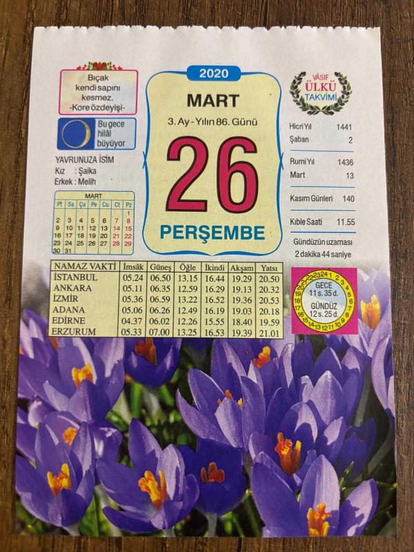 Orijinal takvim yaprağıdır.