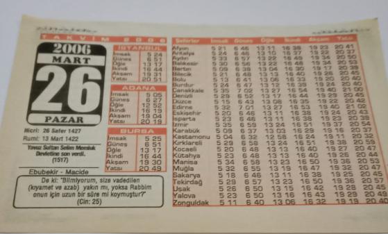 26 Mart 2006-Orijinal Takvim Yaprağı-Doğum Günü-Söz,Nişan,Nikâh,Düğün ve Önemli Günler Hediyesi-Bizim Anadolu Takvimleri-Ayet-Hadis(Cin:25)(Yavuz Sultan Selim Memluk Devletine son verdi(1517))-Ebubekir,Macide-Devlet, en son 2 ay önce güncellenmiştir.
