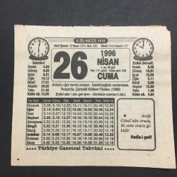 26 NİSAN 1996-TAKVİM YAPRAĞI-DOĞUM GÜNÜ HEDİYESİ-TÜRKİYE GAZETESİ TAKVİMİ,ARILARIN OĞUL VERME ZAMANI,İPEKBÖCEĞİNİN CANLANMASI ,RUSYADA ÇERNOVİL NÜKLEER FACİASI 1986,AREFE GÜNÜ VE GECESİ,TEKBİR İ TEŞRİK
