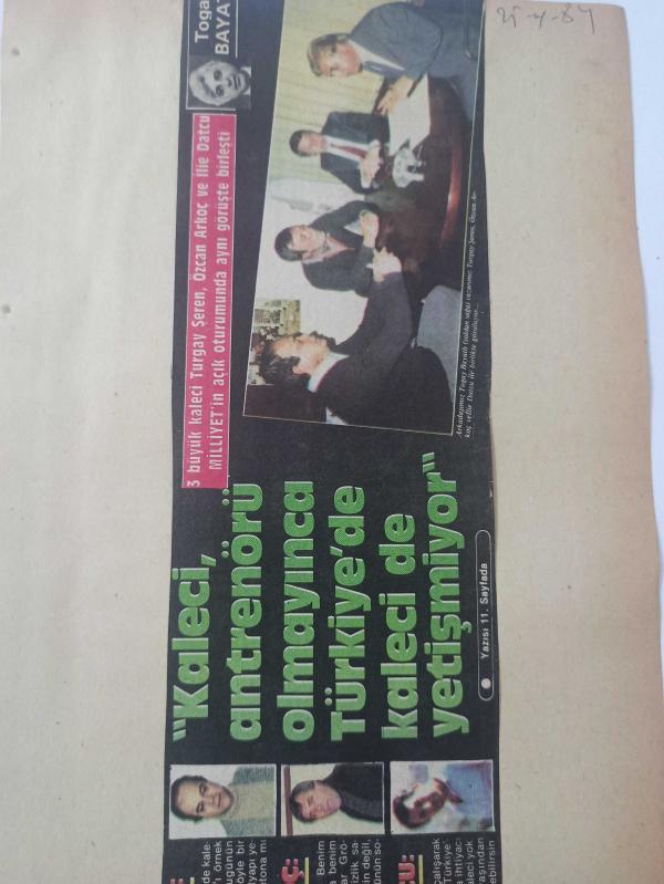 26 Nisan 1984 - ''Kaleci, antrenörü olmayınca Türkiye'de kaleci de yetişmiyor'' - 3 büyük kaleci Turgay Şeren, Özcan Arkoç ve İlie Datcu Milliyet'in açık oturumunda aynı görüşte birleştiler - Gazete haberi - Tek Yaprak Arkalı Önlüdür adlı eser, Kitap > Süreli Yayınlar > Dergiler > Spor kategorisinde İkinci El olarak satıştadır.