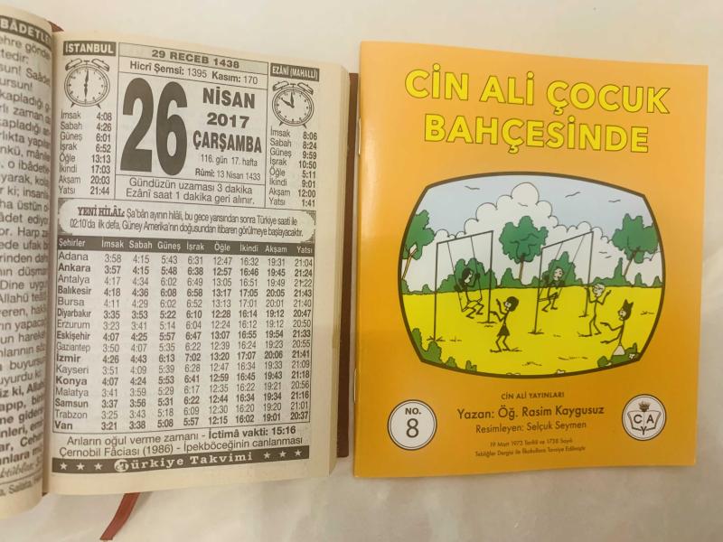 26 Nisan 2017 hediyelik orijinal Türkiye takvim yaprağı (Cin Ali kitabı hediyeli:) başlıklı ürün, Efemera, Müzik, Sinema > Belge ve Evraklar > Takvimler kategorisi altında İkinci El olarak satılmaktadır.