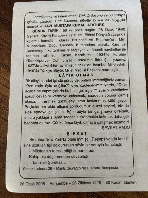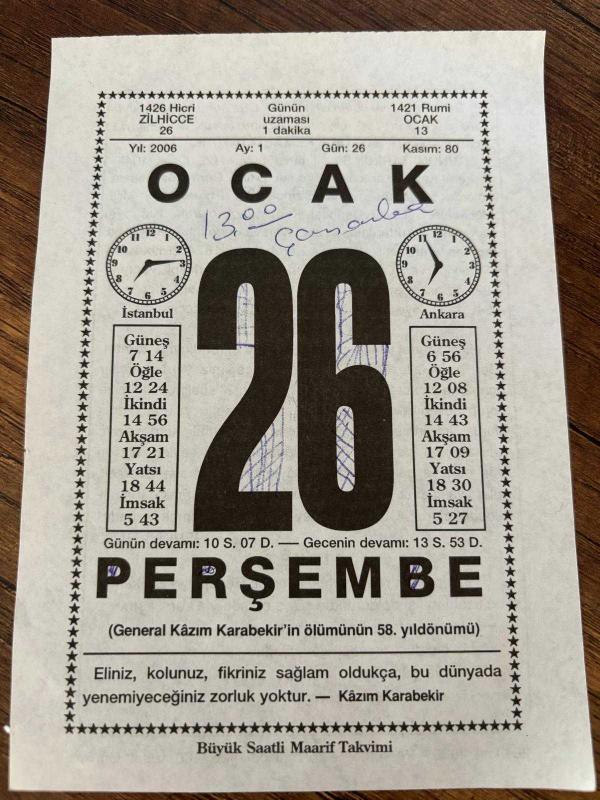 26 OCAK 2006 - TAKVİM YAPRAĞI - DOĞUM GÜNÜ HEDİYESİ - BÜYÜK SAATLİ MAARİF TAKVİMİ - KAZIM KARABEKİR - GAZİ MUSTAFA KEMAL ATATÜRK - KAZIM KARABEKİR'İN VEFATI - ŞEVKET RADO, 3 ay önce satışa sunulmuştur.