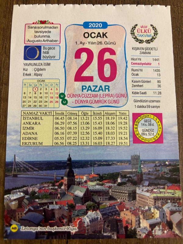 26 OCAK 2020 - TAKVİM YAPRAĞI - DOĞUM GÜNÜ HEDİYESİ - BÜYÜK SAATLİ MAARİF TAKVİMİ - LETONYA'NIN BAŞKENTİ RİGA - DÜNYA CÜZZAM GÜNÜ - DÜNYA GÜMRÜK GÜNÜ, en son 8 ay önce güncellenmiştir.