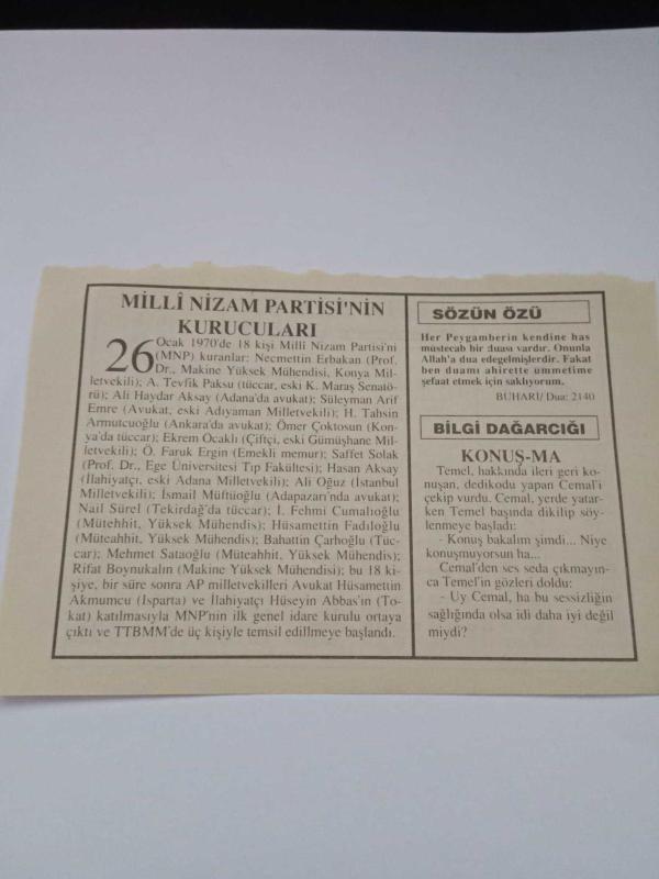 26 Ocak 1995-Orijinal Takvim Yaprağı-Doğum Günü-Söz,Nişan,Nikâh,Düğün ve Önemli Günler Hediyesi-Fatih Hak ve Hizmet Vakfı-Ayet/Hadis(İbni Mace:7/2518)-Milli Nizam Partisi'nin Kurucuları-Buhari/Dua:2140-Konuş-ma, 6 gün önce satışa sunulmuştur.