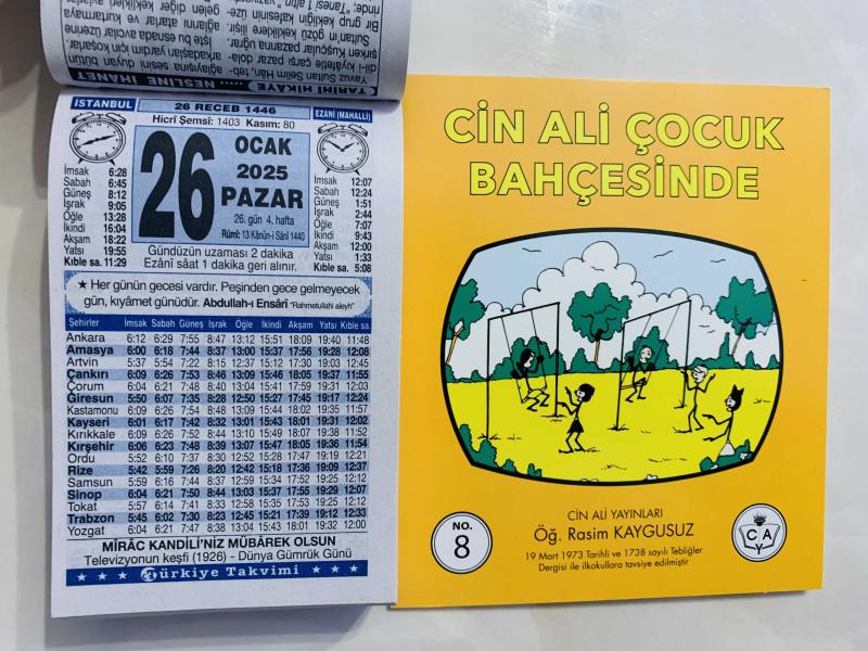 26 Ocak 2025 hediyelik orijinal Türkiye takvim yaprağı (Cin Ali kitabı hediyeli:), en son 7 ay önce güncellenmiştir.