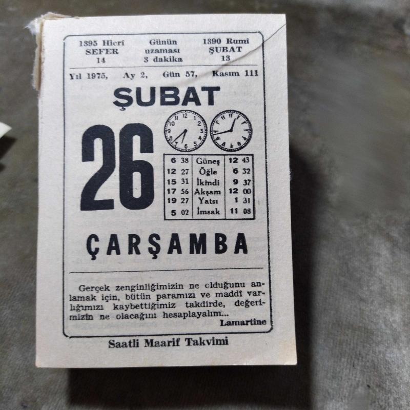 26 ŞUBAT 1975 SAATLİ MAARİF TAKVİM YAPRAĞI, en son 1 yıl önce güncellenmiştir.