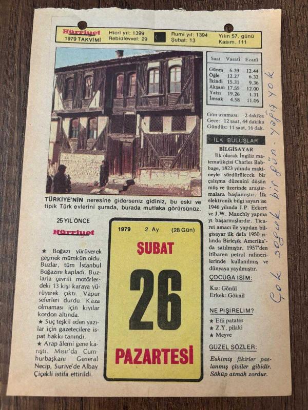 26 ŞUBAT 1979 - TAKVİM YAPRAĞI - DOĞUM GÜNÜ HEDİYESİ - HÜRRİYET TAKVİMİ - ÖLÜM TANRISI ROMANI - Hasan Ali Yücel'in ölümü (1961) - Besteci Giriftzen Asım Bey'in ölümü (1929), 3 ay önce satışa sunulmuştur.